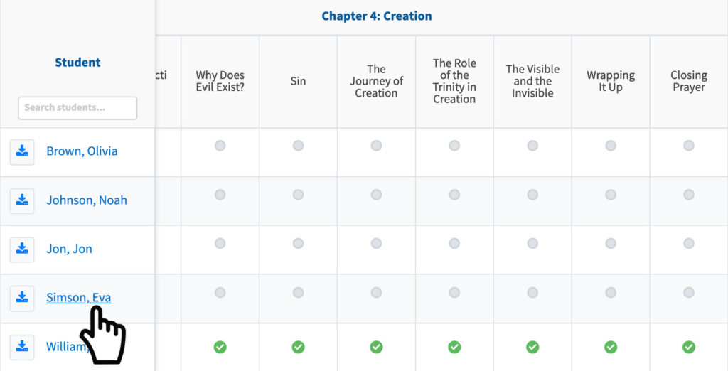 Step 8: You can also download the student’s progress shown in the Chapter by clicking the “Download” icon.